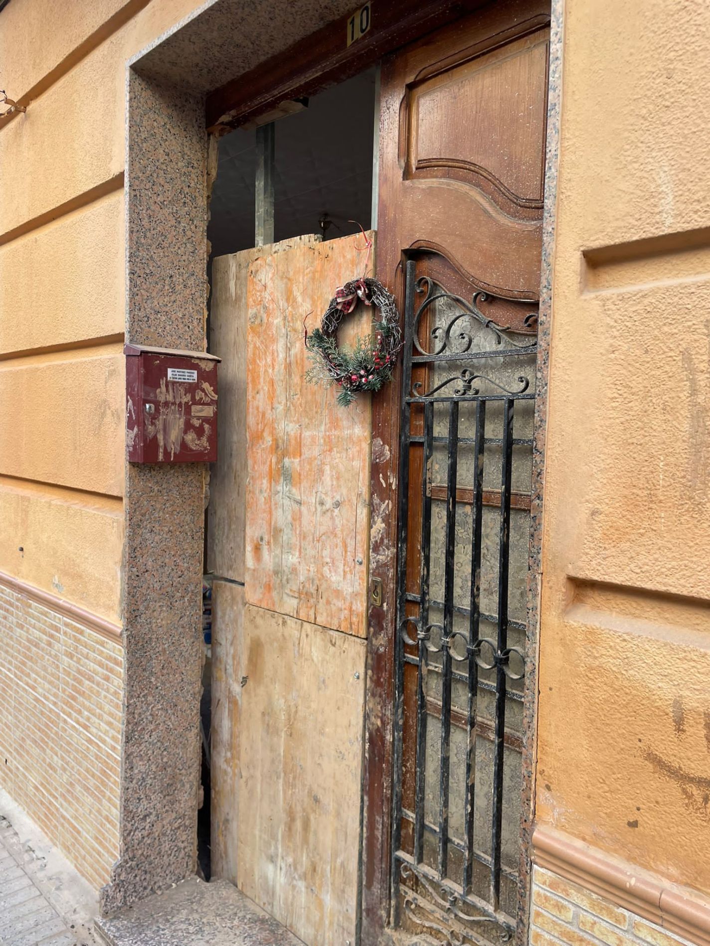 Nous approchons de la ville et il semble tout à coup que quelque chose ne s'accorde pas avec la tiédeur de l'air. De part et d'autre de la route, les champs d'oliviers semblent avoir subi une attaque de sauterelles : les arbres sont courbés, les branches sont dénudées et il ne subsiste que quelques fruits à la peau terne. Puis, on voit des amoncellements de voitures qui témoignent d'un chaos très récent. Nous entrons dans la ville et dans les rues, c'est la désolation: portes provisoires avec de nombreuses traces de boue, logements en rez-de-chaussée aux fenêtres grandes ouvertes pour chasser l'humidité…